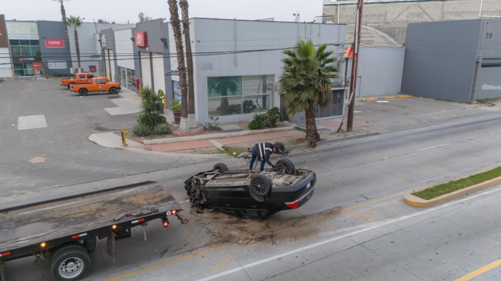 El auto, un Chevrolet Impala color negro, quedó sobre la vía rápida, en los carriles de baja velocidad. La unidad, con placas de California 6WMZ264, fue abandonada, ya que no se localizaron personas en el sitio.