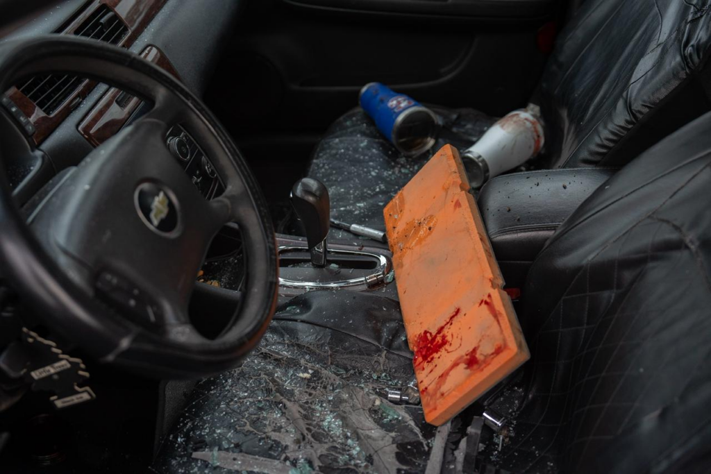 Dentro del vehículo se encontraron herramientas, termos de café y manchas de sangre.
