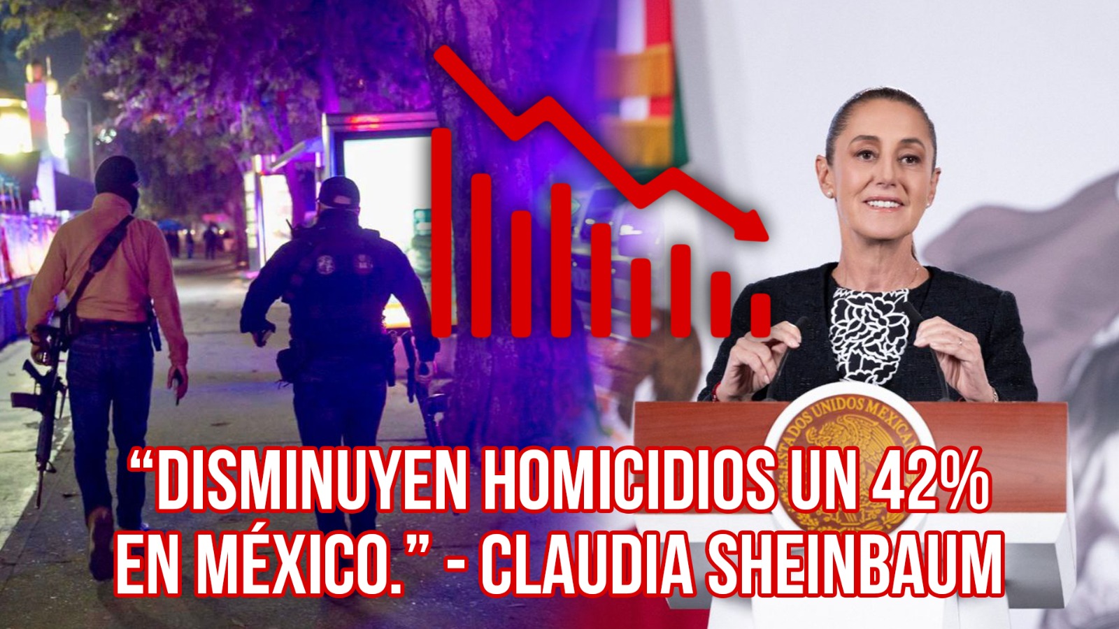 La Presidenta de México, Claudia Sheinbaum Pardo, resaltó que a nivel nacional los homicidios dolosos disminuyeron 42 por ciento, de septiembre de 2024 a enero de 2026, al pasar de un promedio diario de 86.9 a 50.9 víctimas, lo que representa una reducción de la violencia de 36 homicidios dolosos diarios menos. Además, enero de 2026 es el enero más bajo desde 2016.