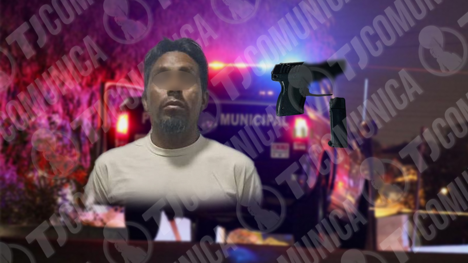 Los agentes, tras realizar un recorrido de vigilancia, aseguraron al hombre de 40 años de edad en posesión de un 4rma de fuego tipo pistola de color negro , cal. .380; así como un cargador de plástico color negro y tres cartuchos útiles calibre .380, de color dorado.
