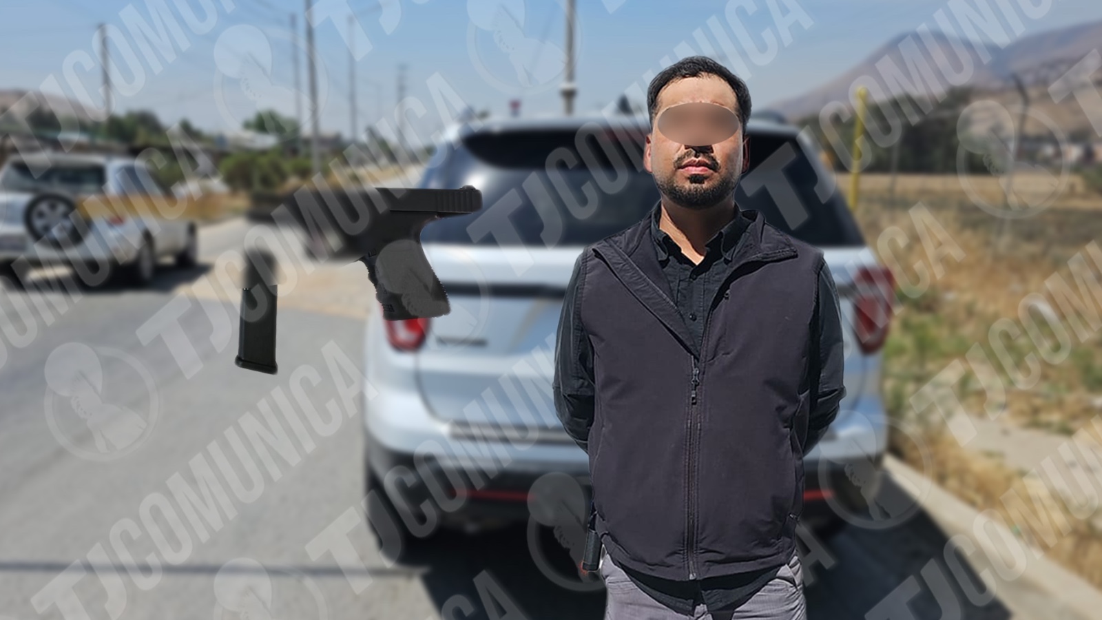 Un hombre fue detenido por elementos de Policía Municipal de Tijuana tras ser sorprendido en posesión de un arma de fuego en las inmediaciones de Margaritas Residencial, sobre la Carretera Antigua a Tecate y avenida de las Margaritas.