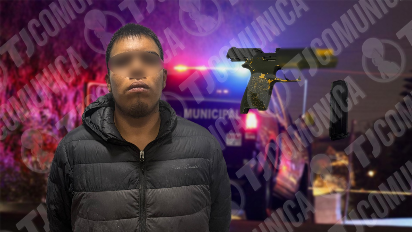 El sujeto fue alcanzado y asegurado metros adelante, siendo identificado como Christian N, de 23 años de edad, originario de Tijuana. En el lugar se aseguró un ar4a de fuego tipo pistola marca Sig Sauer P320, calibre .45, con un cargador metálico abastecido con cuatro cartuchos útiles, misma que fue debidamente desabastecida y puesta bajo cadena de custodia.