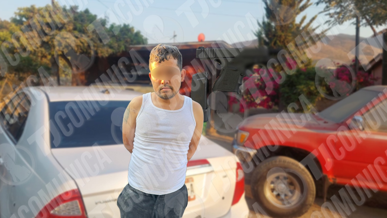 Según reportes preliminares, el detenido, originario de Tijuana, portaba un arma de fuego tipo pistola, color negro, calibre 9 mm, con la leyenda Glock 26, y un cargador de plástico color negro con la leyenda GLOCK AUSTRIA, abastecido con cinco cartuchos útiles de color dorado calibre 9 mm y un cartucho de color plateado calibre 9 mm.
