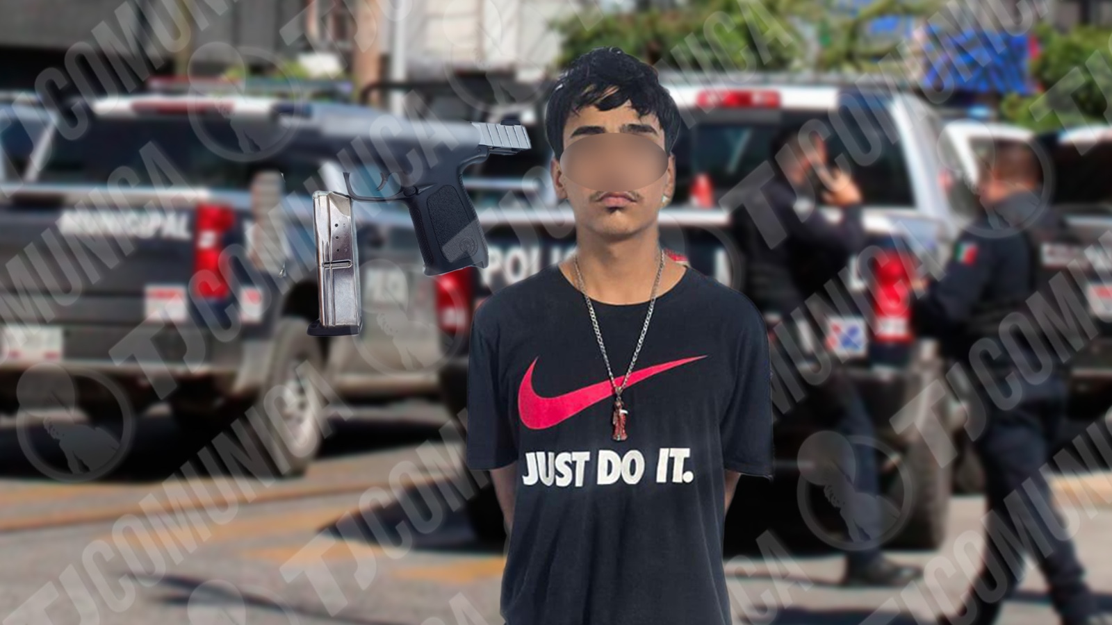 Tras interceptarlo, el individuo se identificó como Bryan “N” de 20 años, originario de Tijuana, a quien se le realizó una revisión precautoria, encontrándole fajada a la cintura un 4rma de fuego tipo pistol4, color negro con gris, con la leyenda SMITH & WESSON SD9VE, Springfield MA U.S.A., número de serie HFE3773, c4libre 9mm, con cargador metálico plateado abastecido con nueve c4rtuchos útiles expansivos.