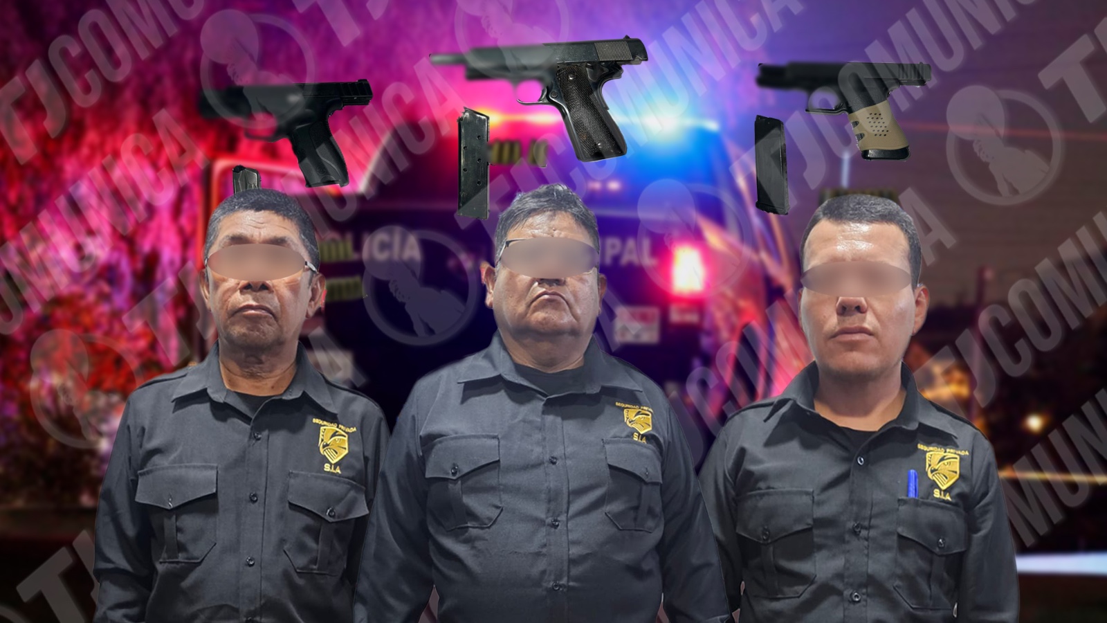 Durante la intervención, a los detenidos se les aseguraron tres armas de fuego: una pistola calibre .45 abastecida con cinco cartuchos, una más calibre 9 milímetros con 16 tiros útiles, y otra calibre .45 con nueve cartuchos.