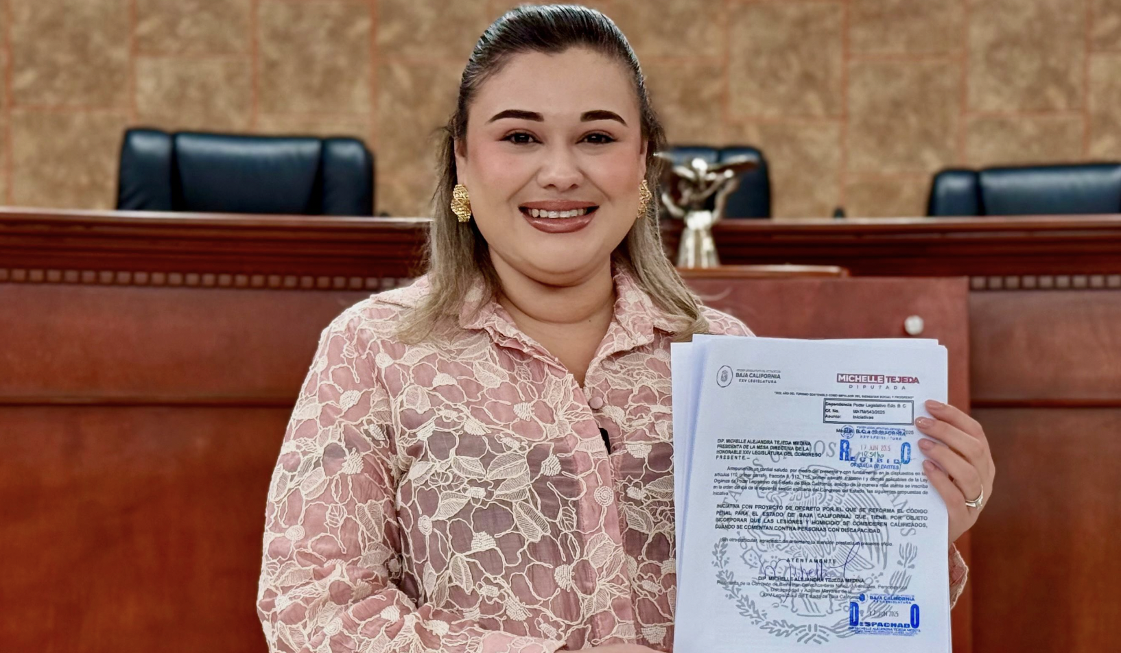 Como presidenta del Congreso del Estado de Baja California, la Diputada Michelle Tejeda reafirmó su compromiso con una agenda legislativa sensible, incluyente y enfocada en los derechos humanos. “Esta reforma representa un paso firme hacia una sociedad donde la justicia no sea indiferente frente a quienes más apoyo requieren del Estado”, expresó la legisladora al presentar la iniciativa.