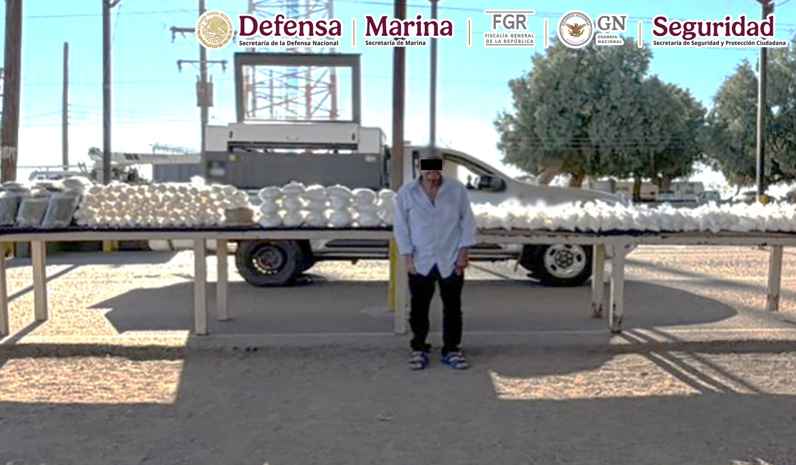 Resultado del reforzamiento de seguridad en carreteras del país, elementos de la Secretaría de la Defensa Nacional (Defensa) y Guardia Nacional (GN), junto con Secretaría de Marina (Semar), Fiscalía General de la República (FGR) y Secretaría de Seguridad y Protección Ciudadana (SSPC) detuvieron a un hombre que transportaba más de 200 kilos de metanfetamina, 14 kilos de marihuana y un kilo de fentanilo, en Sonora; además, en Sinaloa se localizaron e inhabilitaron 11 áreas de concentración de material para la elaboración de drogas sintéticas.
