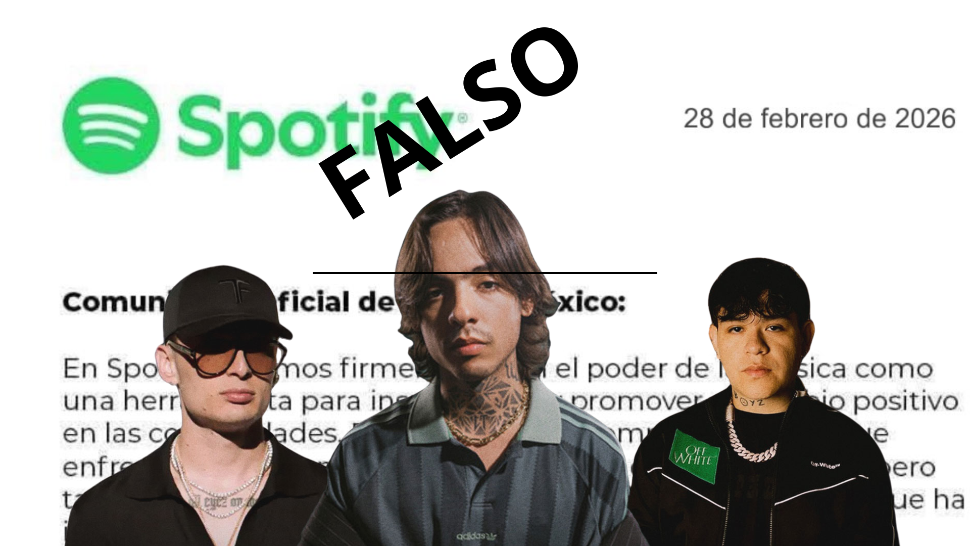 En las últimas horas de ayer sábado comenzó a difundirse un supuesto comunicado en el que se afirmaba que Spotify retiraría de su catálogo los narcocorridos y otros subgéneros relacionados con la música regional urbana. Sin embargo, el mensaje no aparece en ninguno de los canales oficiales de la empresa, lo que ha generado confusión y debate entre usuarios y artistas.