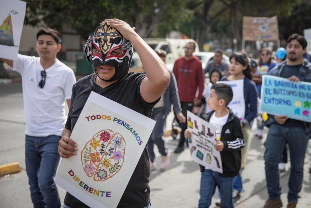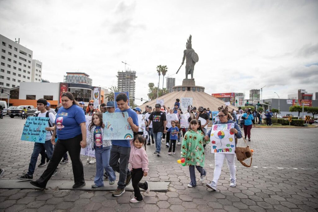 En el marco del Día Mundial de Concienciación sobre el Autismo, familias de niñas y niños dentro del espectro autista marcharon por las calles de la Zona Río en Tijuana, con el objetivo de visibilizar la falta de empatía, información y apoyo que aún persiste en la sociedad.