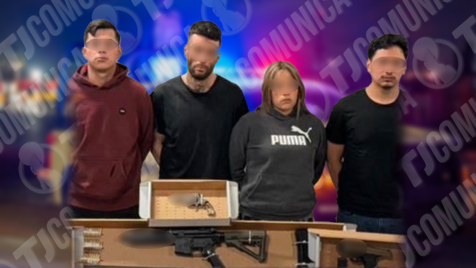 Los hechos ocurrieron durante un operativo preventivo en la colonia Primer Ayuntamiento, donde los agentes detuvieron a tres hombres y una mujer, quienes portaban un fusil de asalto calibre .223, dos pist0las calibre 9 mm y un revólv3r.