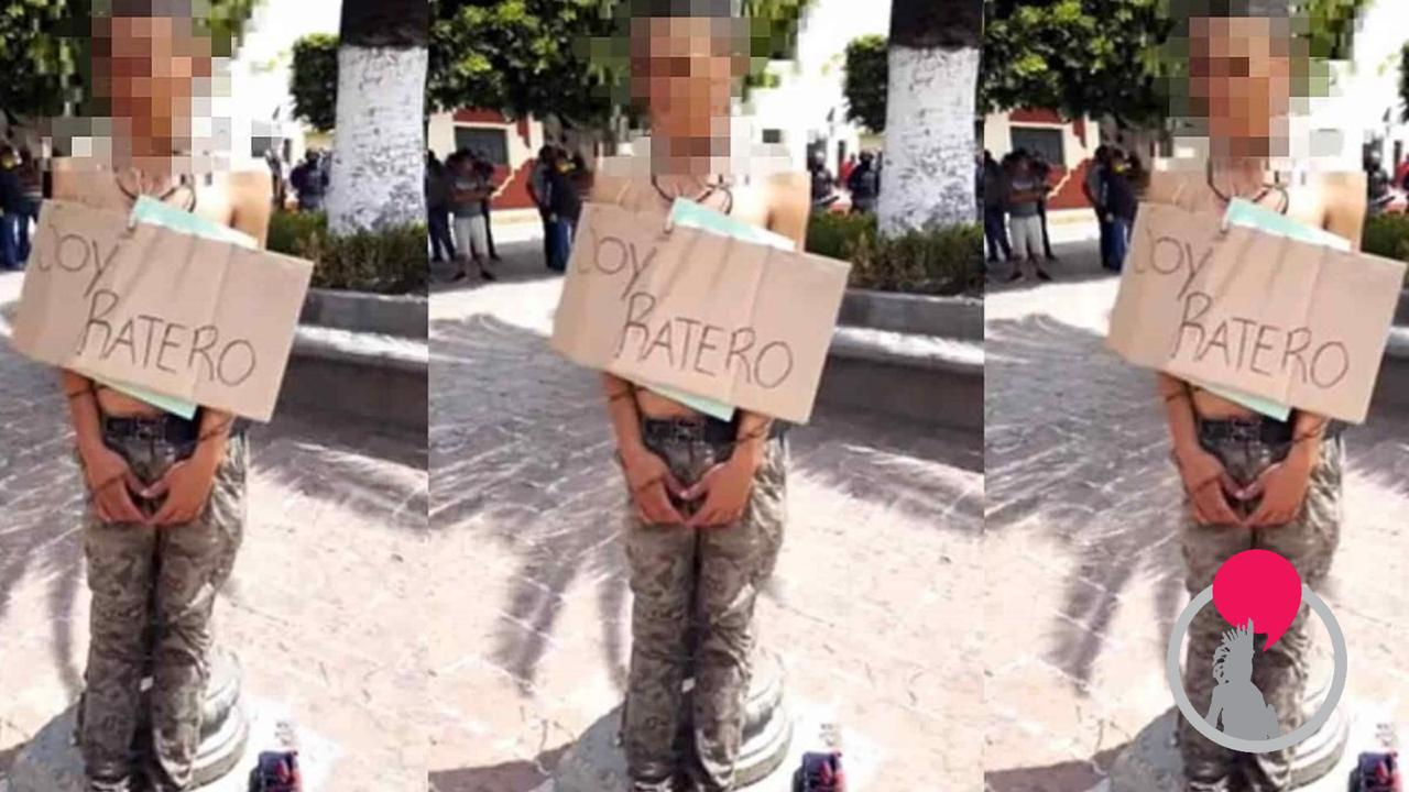 También lo exhibieron al amarrarlo a un poste con un cartel con el texto "soy ratero".