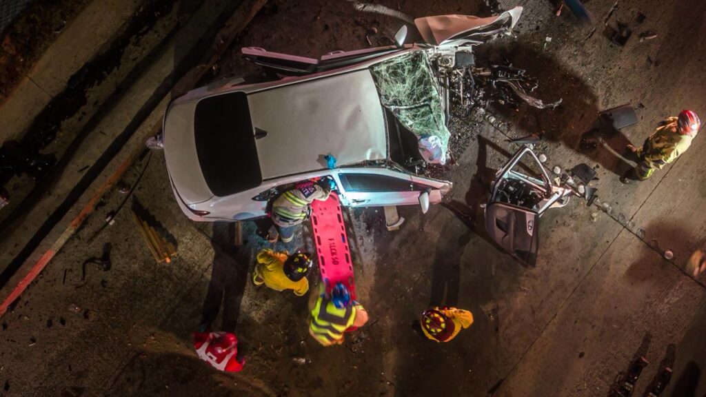De acuerdo con el reporte, elementos del Cuerpo de Bomberos acudieron al lugar tras recibir el llamado de emergencia y localizaron un automóvil tipo sedan color blanco completamente destruido, con tres personas en su interior.