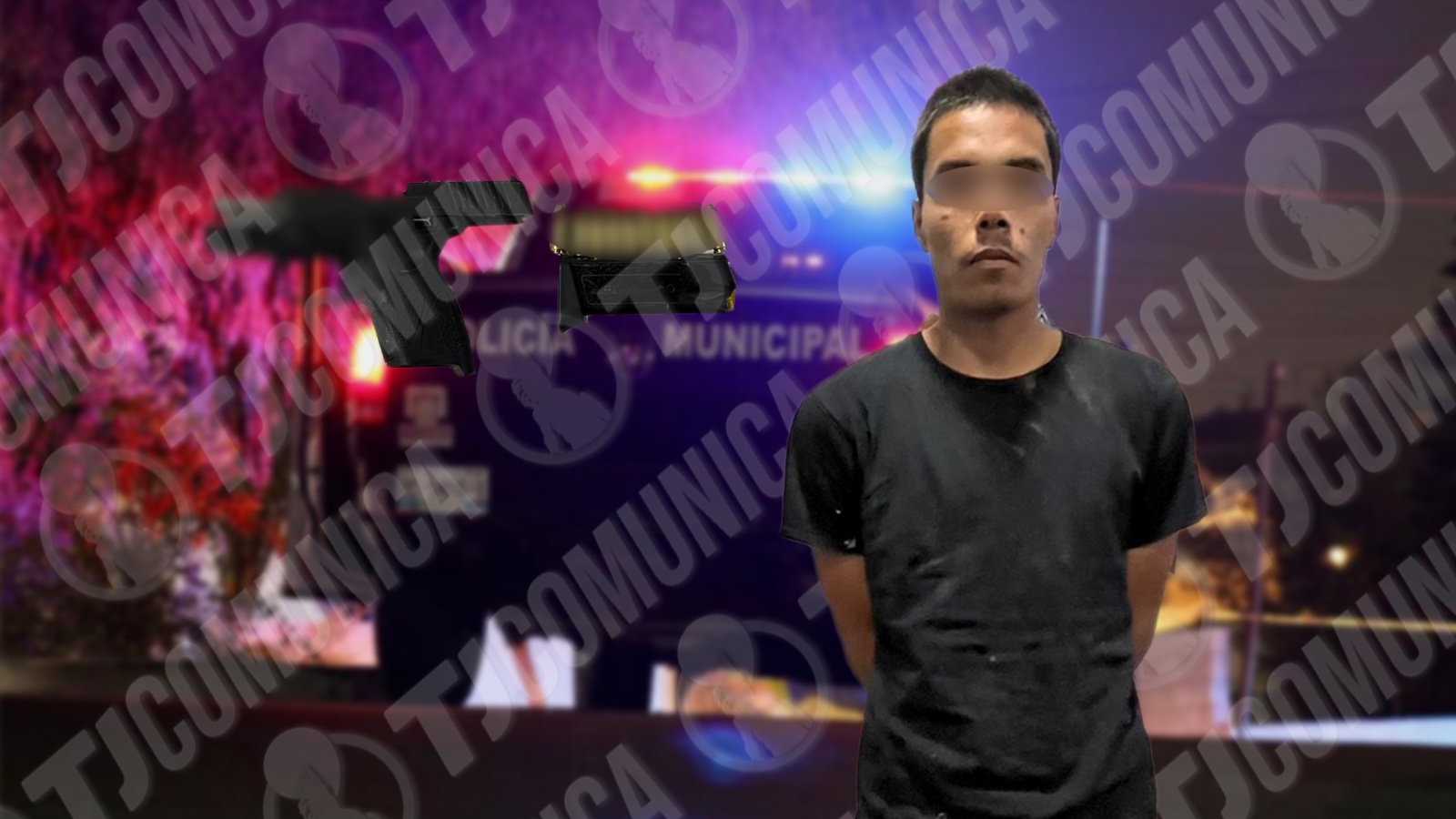 Durante la intervención, los oficiales aseguraron a Bryan “N”, de 26 años de edad, originario de Tijuana, quien se encontraba en posesión de una pistola calibre 9 milímetros.