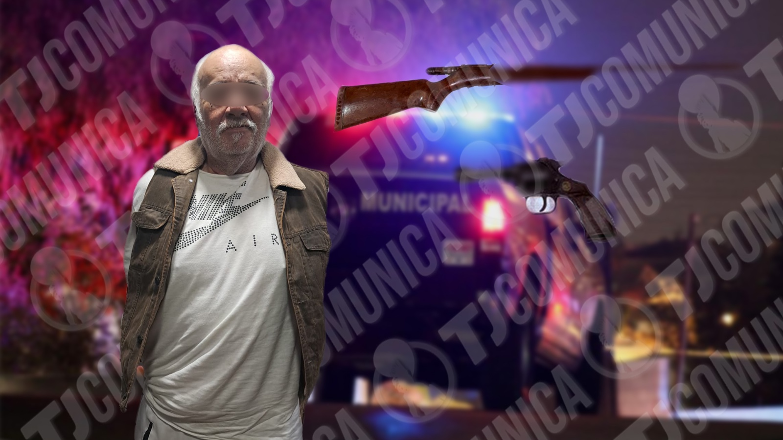 Ante la situación, los agentes procedieron a intervenir y aseguraron a quien fue identificado como Arturo Bañuelos Martínez, de 68 años de edad. Durante la revisión, se le localizaron un revólver calibre .22 abastecido con cartuchos útiles, así como una escopeta calibre 12 sin municiones.