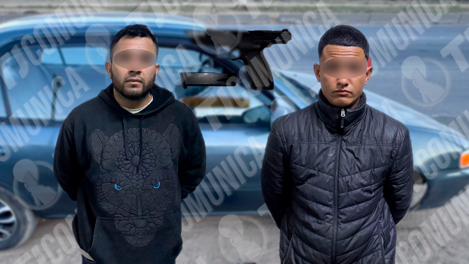 Elementos de la Policía Municipal de Tijuana detuvieron esta tarde a dos personas arm4das en el corredor 2000 y la avenida Nogales, en Valle Bonito.
