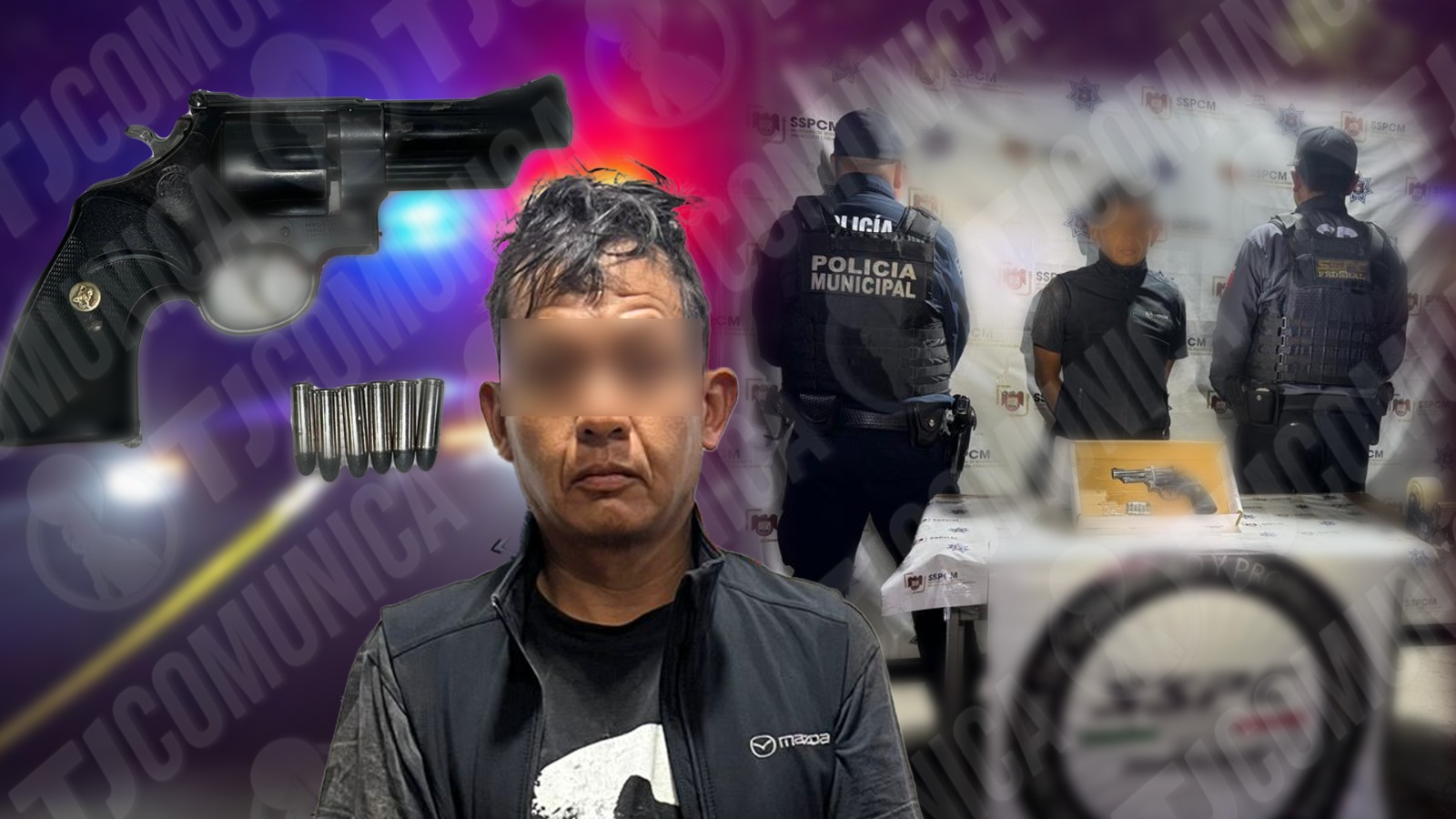 Tras una revisión precautoria, le fue asegurado un revólver calibre .357 abastecido con seis cartuchos útiles, así como el dinero en efectivo y un teléfono celular.