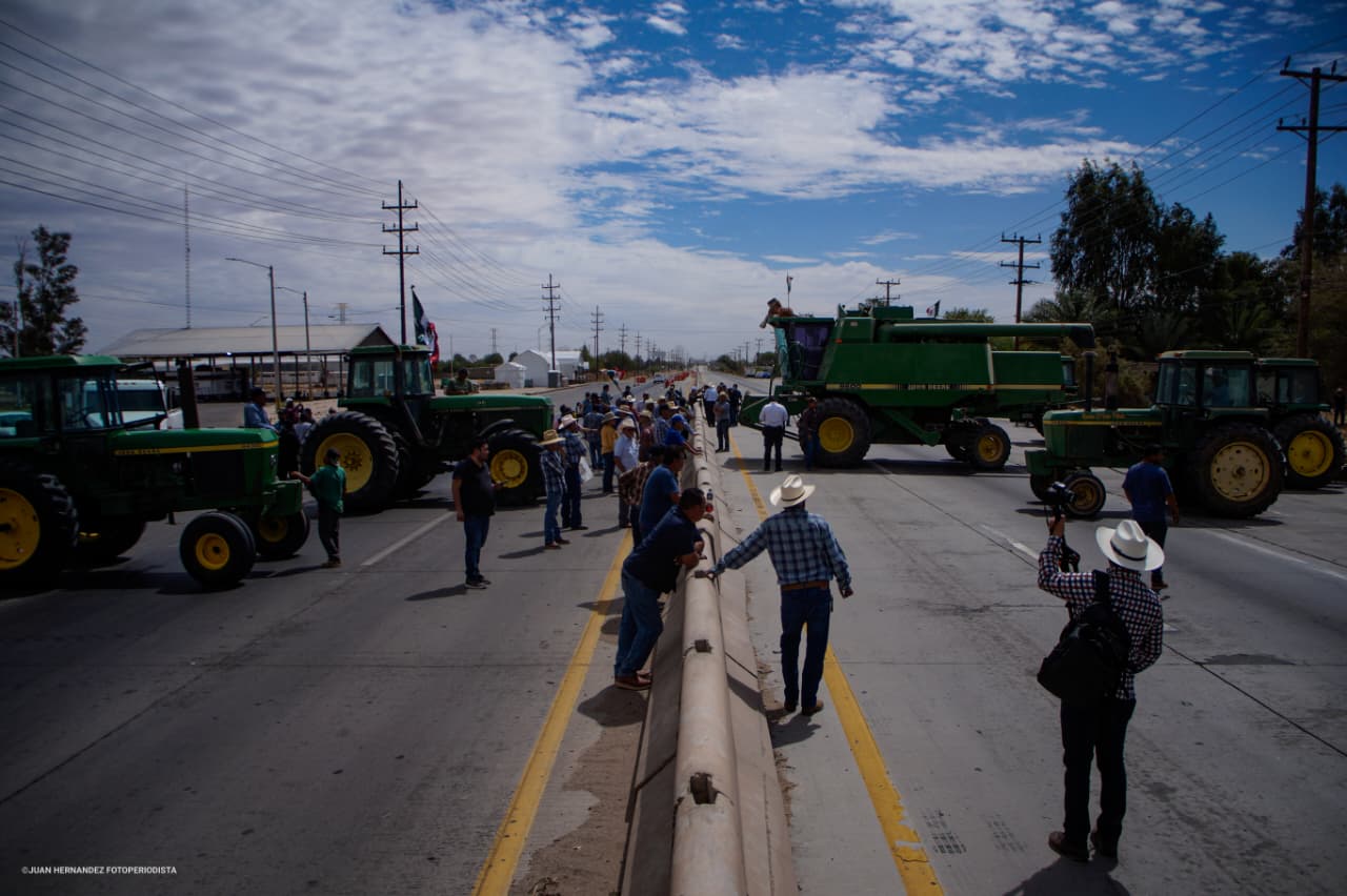Productores del Valle de Mexicali se sumaron al paro nacional y bloquearon con tractores la carretera Mexicali–San Luis Río Colorado, a la altura del Puesto Militar de Seguridad Carretera 2, impidiendo el paso en ambos sentidos.