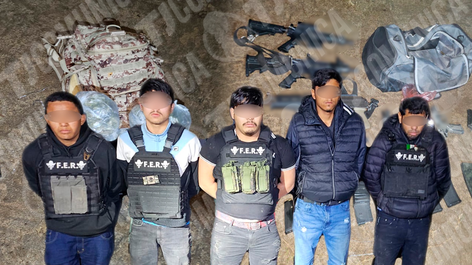 De acuerdo con reportes preliminares, los detenidos son integrantes de la célula criminal del “Ranchero”. Durante el operativo se decomisaron cuatro armas largas, cuatro armas cortas, así como diverso equipo táctico y sustancias ilícitas. Los hombres portaban chaleco táctico con las siglas F.E.R.