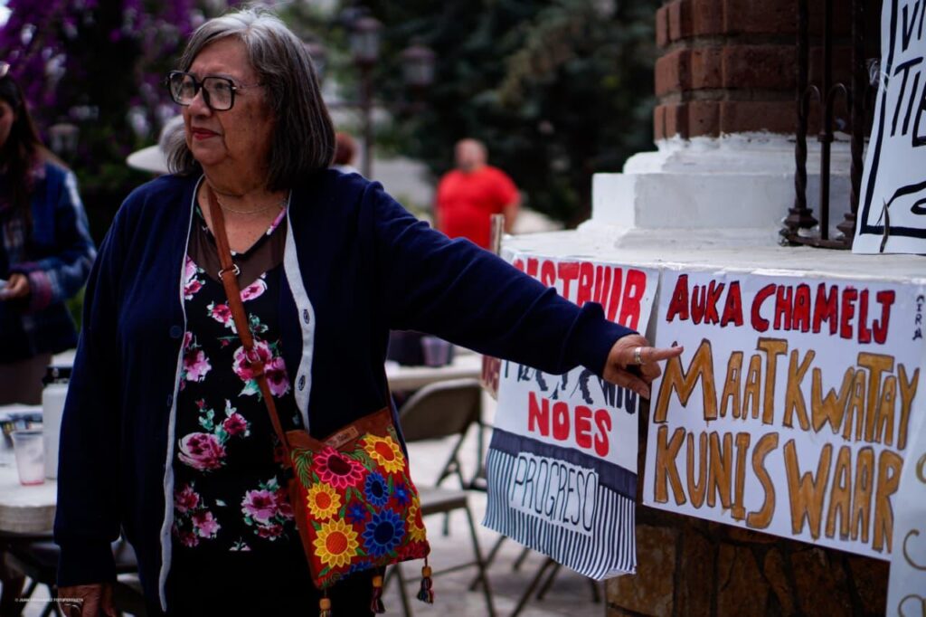Integrantes del colectivo Defensa del Cuchumá se manifestaron este domingo 26 de abril en el Parque Miguel Hidalgo para expresar su rechazo a intervenciones en el Cerro Cuchumá, al que consideran un sitio sagrado y de alto valor cultural y ambiental para la comunidad y el pueblo kumiai.