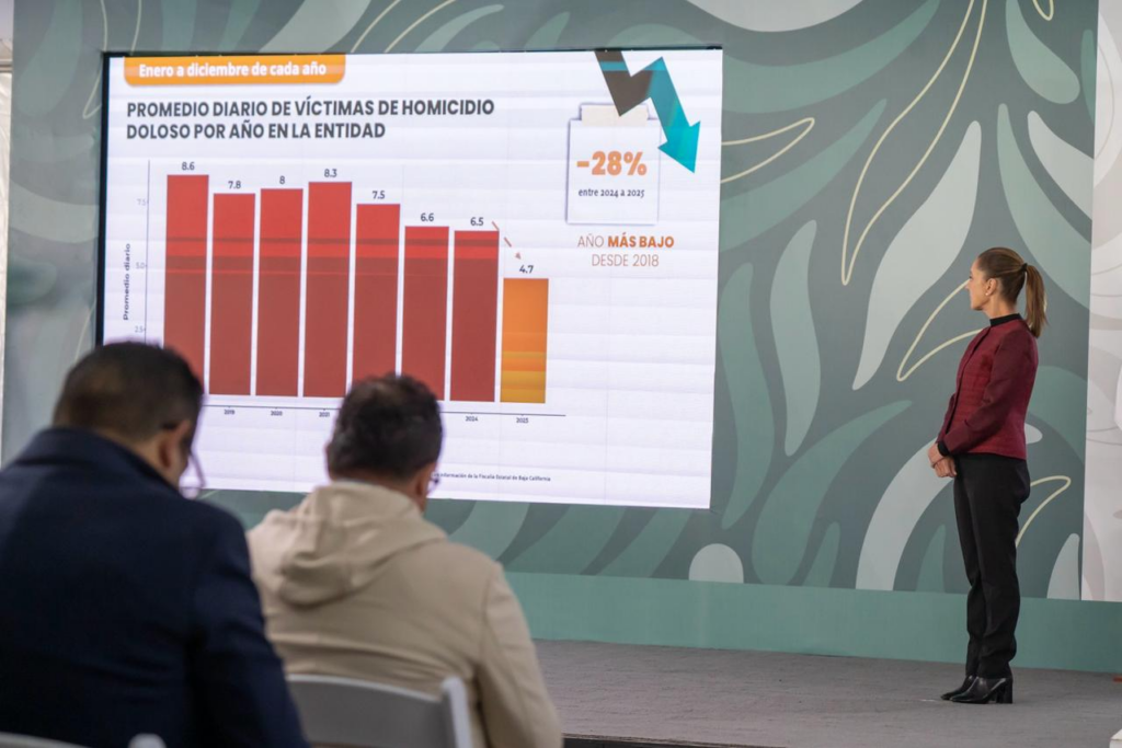 Destacó que en 2024 se contabilizaron en promedio 6.5 homicidios diarios, y en 2025 fueron 4.7, lo que significa una reducción del 28 por ciento.