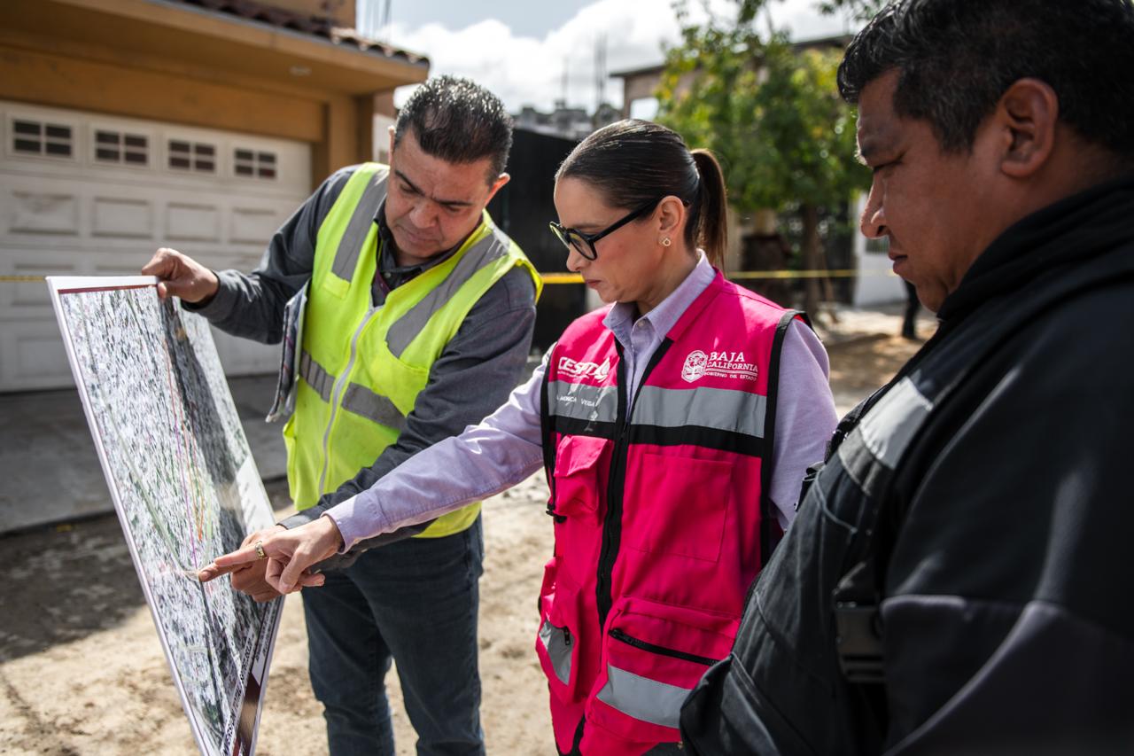 TIJUANA.– La rehabilitación de la red de drenaje en las calles Escultores, Piscis y Alfa de la colonia Sánchez Taboada avanza con trabajos de reposición de tubería y descargas domiciliarias, obra supervisada por la directora general de la Comisión Estatal de Servicios Públicos de Tijuana (CESPT), Mónica Vega Aguirre, y que permitirá mejorar el servicio sanitario para las familias de la zona.