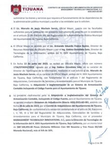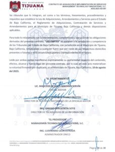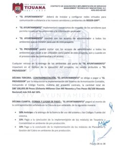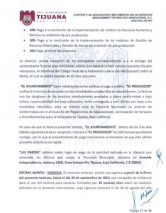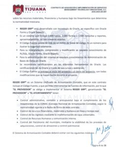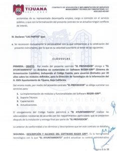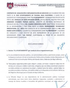 El contrato firmado con la empresa Management Technology Innovation S.C. (MTI), promete que el Ayuntamiento adquirirá un sistema de Armonización contable Reger-GRP. En realidad, ese sistema sí fue entregado, pero nunca funciono, e incluso, en el dicho documento no se especifica porque Tijuana estaría pagando hasta 80 millones de pesos más a comparación de otros municipios a pesar de recibir el mismo servicio.